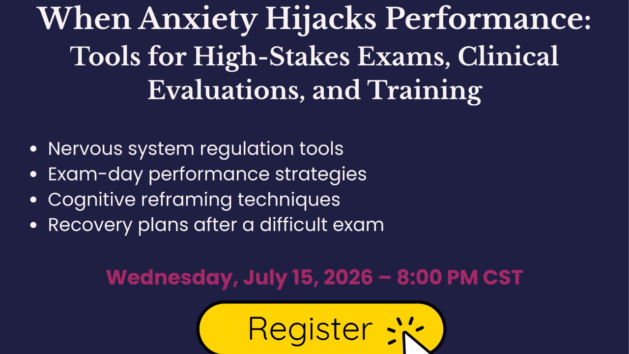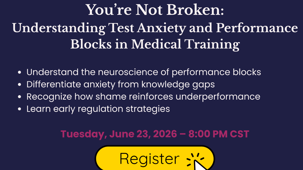 I’m Dr. Bianca Busch, a board-certified psychiatrist who has taken (and retaken) high-stakes exams myself. I created Test Anxiety No More to help physicians retrain their nervous systems and rebuild confidence — without grinding themselves into the ground.